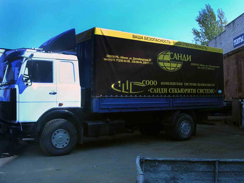 долговечный тип рекламы, если нанесен на тент. Хорошо подходит для жестких